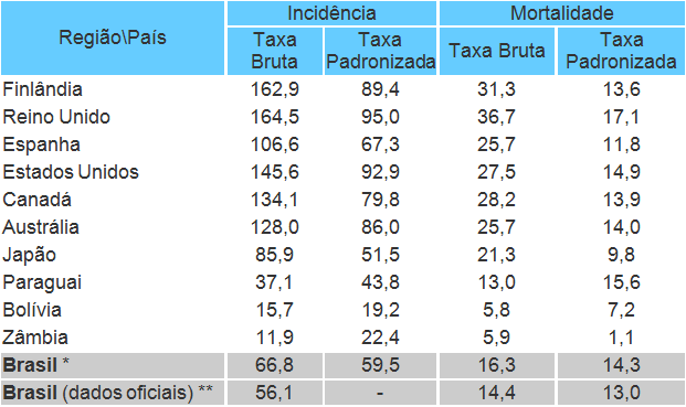 Fonte: Globocan. IARC (WHO), 2012