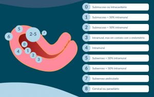 O tratamento depende da localização dos miomas, que podem estar na cavidade uterina (submucosos), na parede uterina (intramurais) ou na superfície do útero (subserosos) e suas combinações, seguimos a classificação da FIGO para melhor identificação (figura 1). Além disso, também é preciso avaliar o tamanho e a quantidade dos nódulos para escolher entre a abordagem clínica ou cirúrgica. Os exames importantes que nos auxiliam nesta tomada de decisões são a ecografia pélvica ou endovaginal e a ressonância nuclear magnética da pelve com contraste (RNM), principalmente quando os miomas são numerosos (mais de 6). É importante lembrar que a maioria das pacientes não terão manifestações clínicas da doença e, portanto, não precisarão de tratamento.